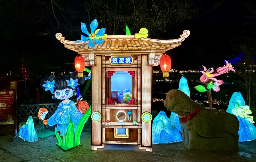 亭台间,自贡彩灯流光溢彩;厅堂内,非遗展览令东谈主流连;园林里,习尚阛阓等你来逛;还有首座“古风扭蛋机”耸峙水边,既能出片又能试试新年手气……